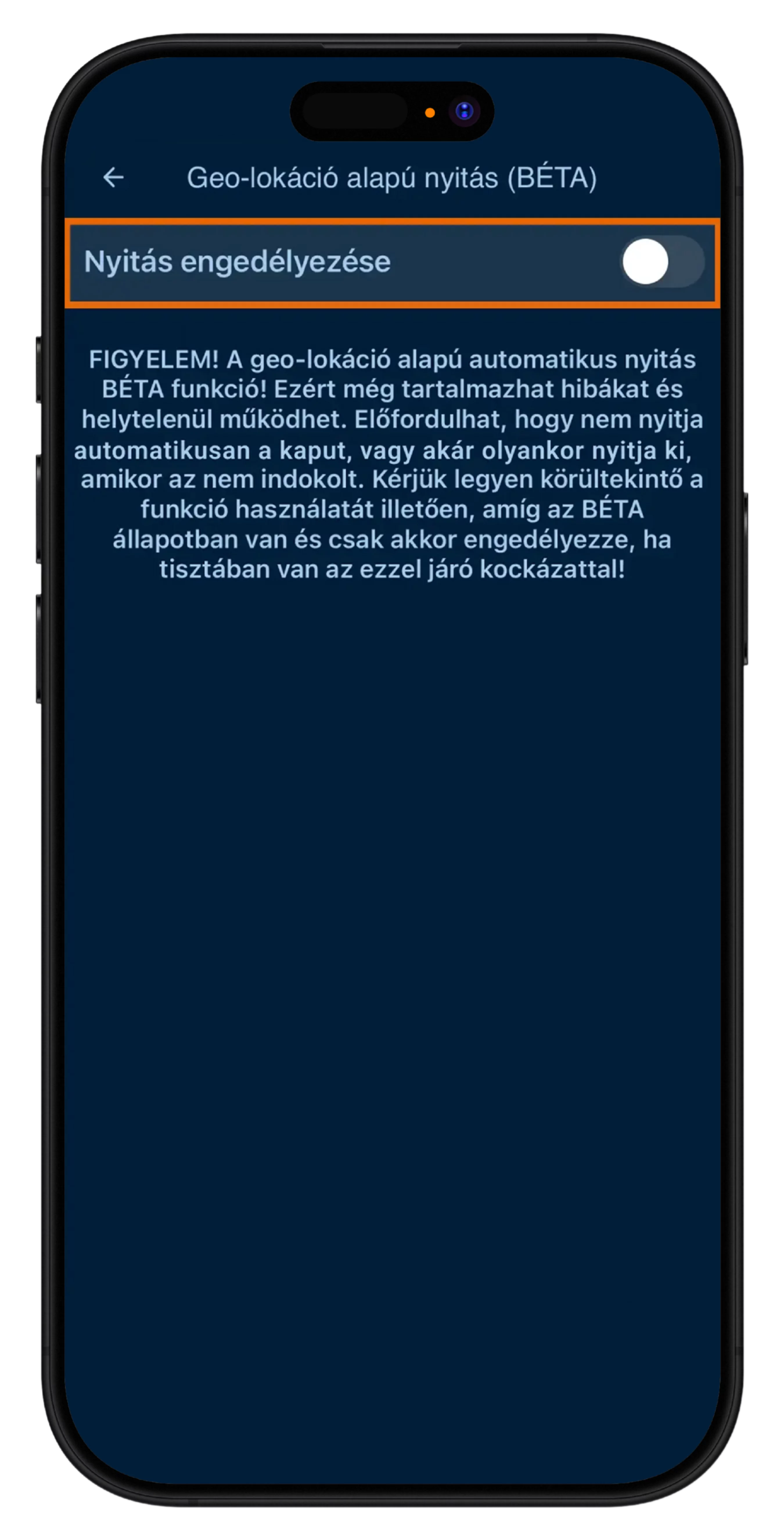 - Koppints a Geolokáció alapú nyitás (BÉTA) gombra.
