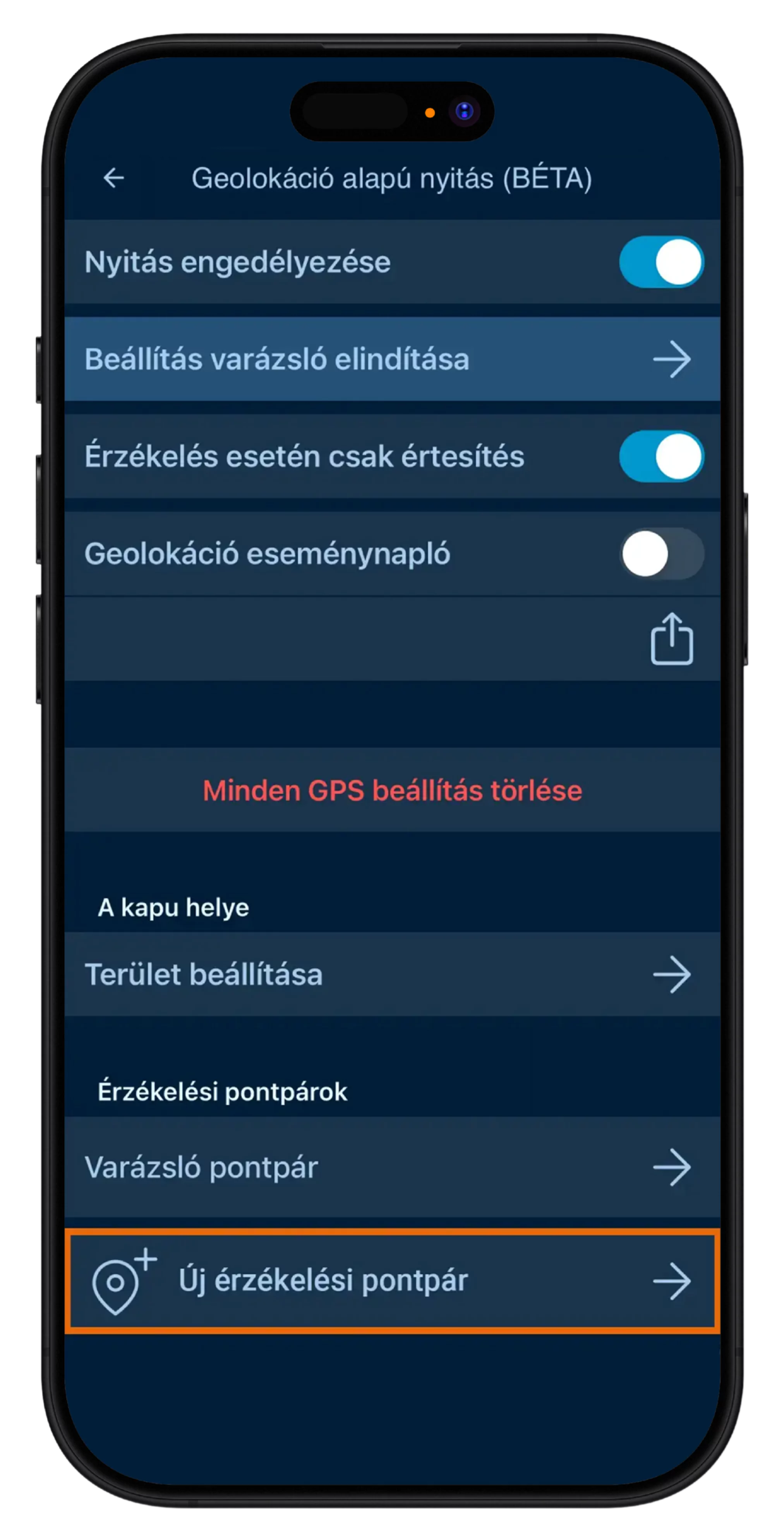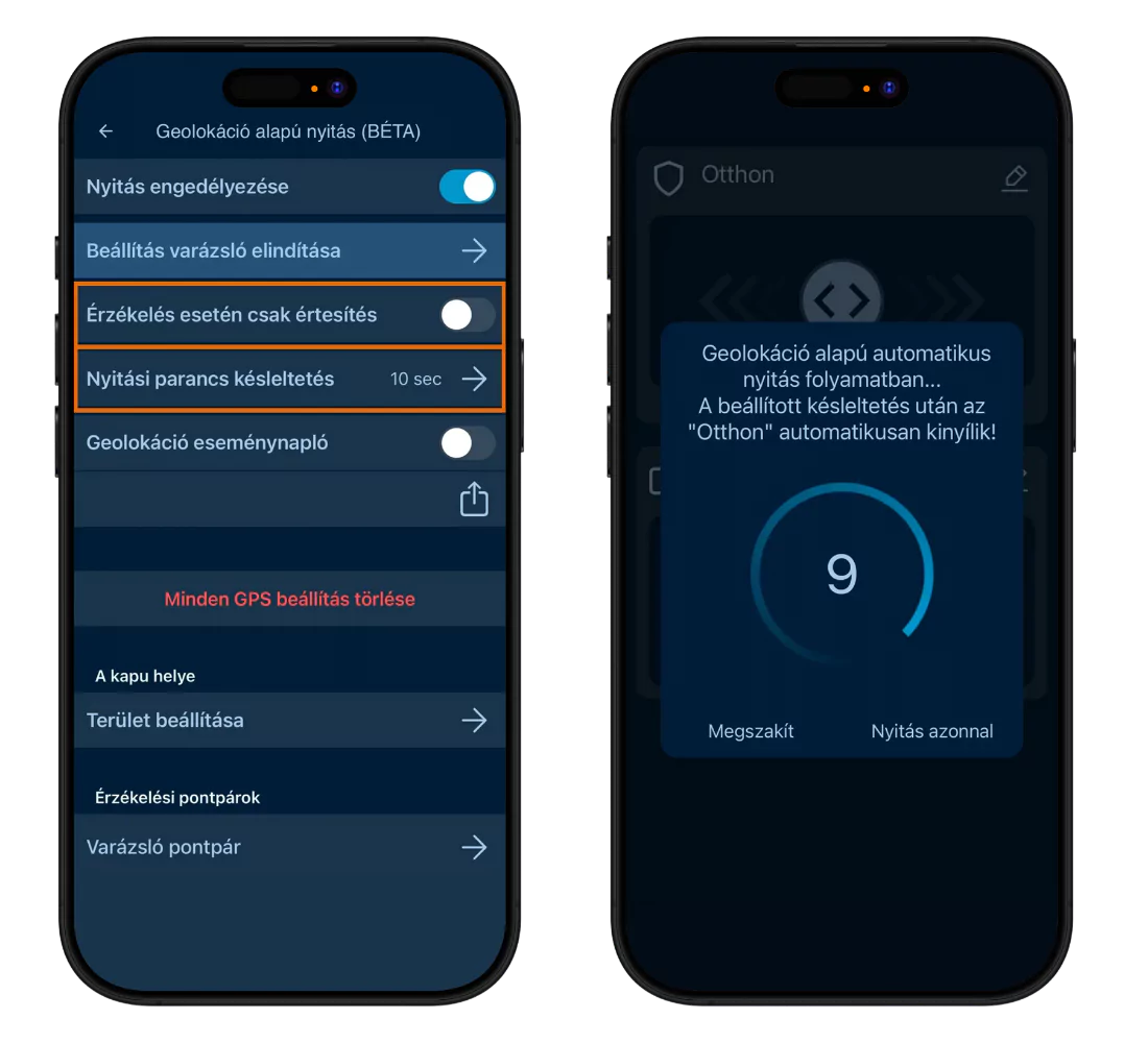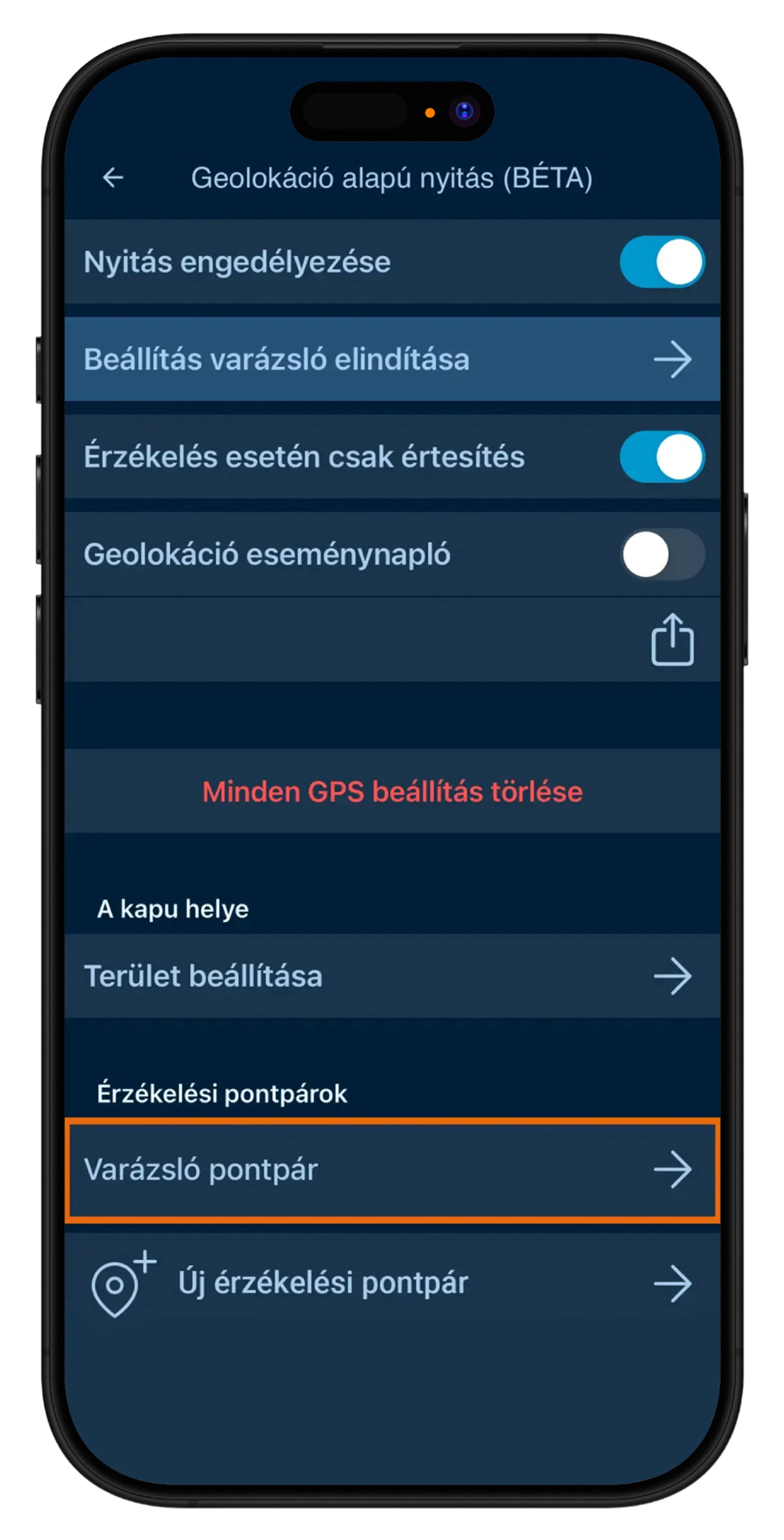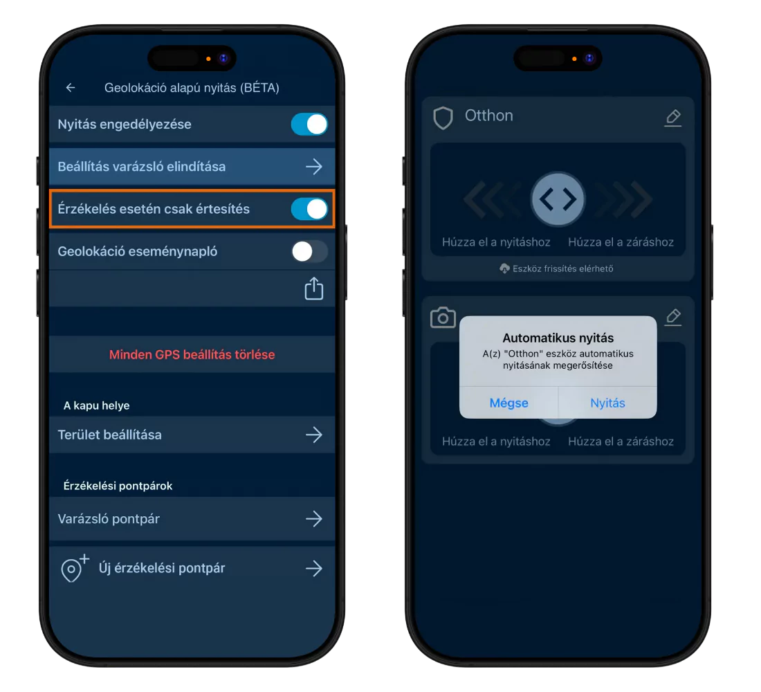 - A geolokáció nyitás funkciót minden kapuhoz külön állítsd be!