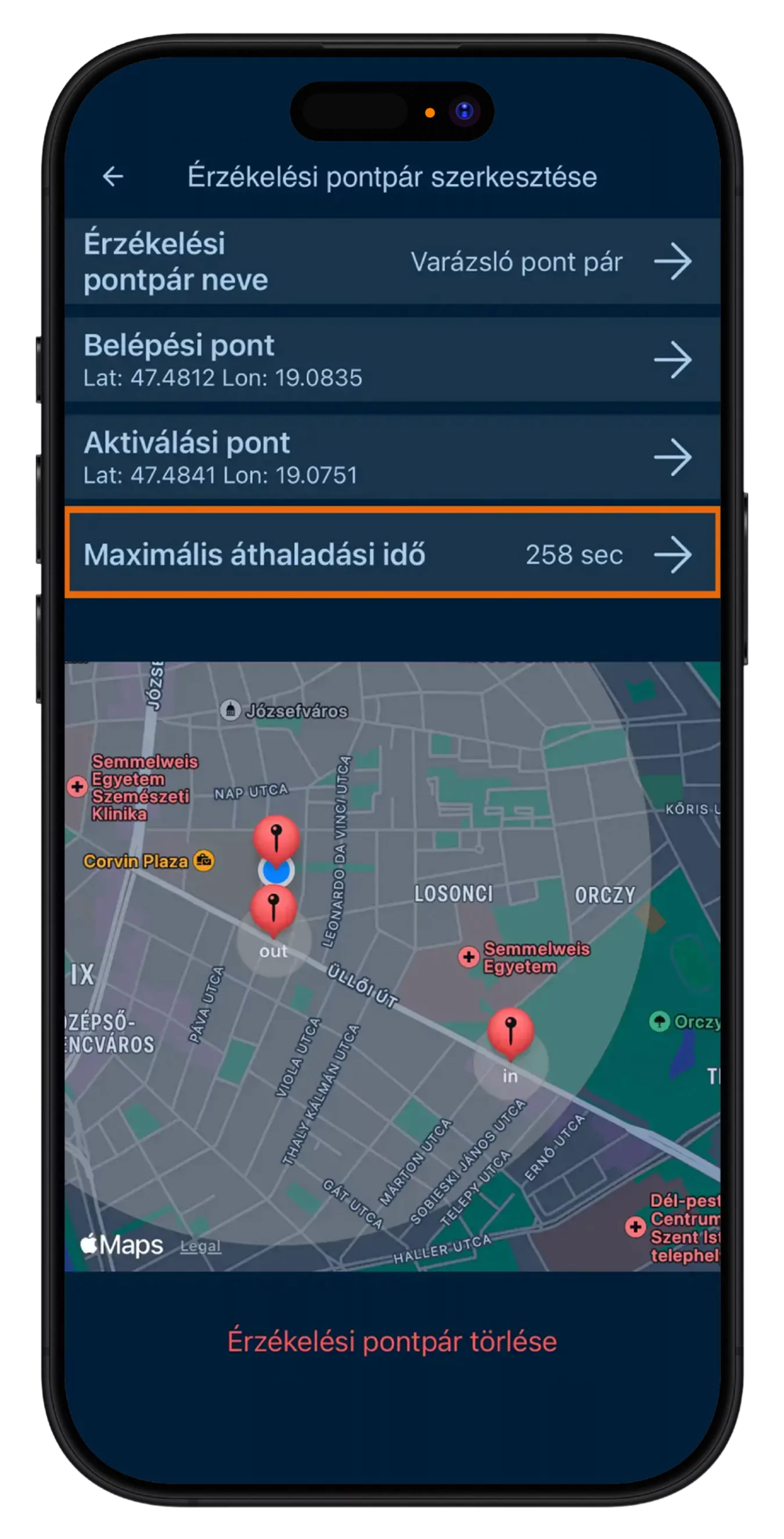 - Az alkalmazásban a “Érzékelési pontpárok / Új érzékelési pontpár” menüpontban további geo-lokációs pontokat vehetsz fel.