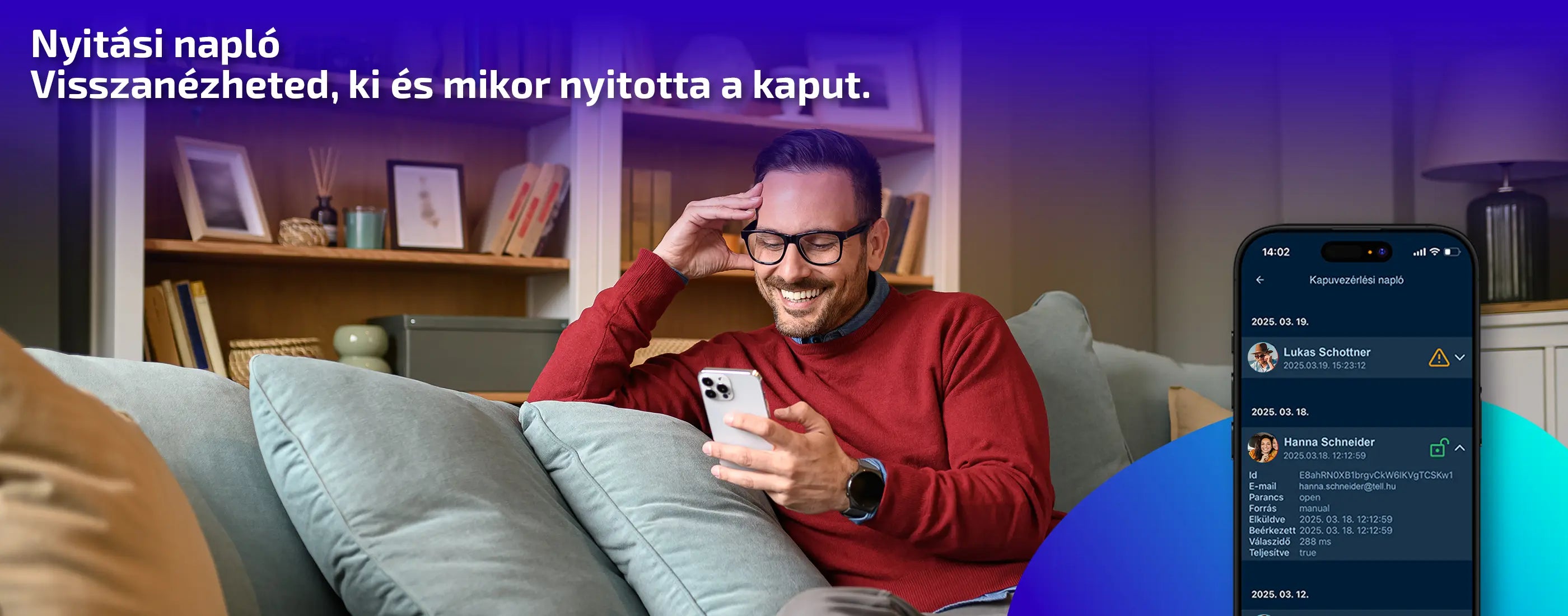 A Tulajdonos a "Kapuvezérlési napló” bekapcsolása után láthatja az eszköz naplózását. Nyomon követheti melyik Felhasználó milyen parancsot küldött az eszközre, illetve további hasznos információkat is kiolvashat az eszköz működéséről.