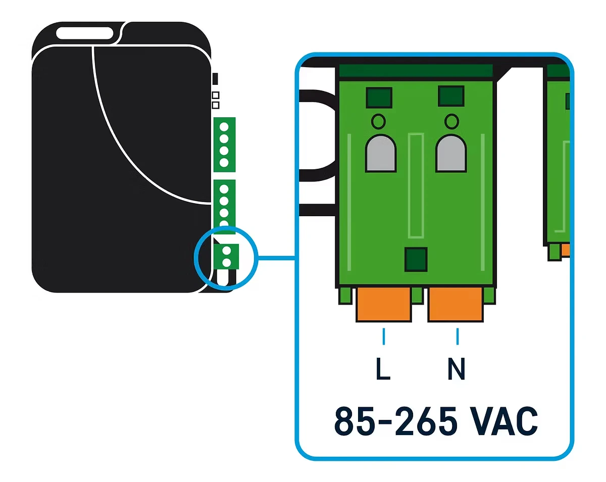 Erre a 230 VAC felirattal megjelölt, különálló kétpólusú csatlakozó szolgál. Kérjük, hogy a fázis / L (LIVE) és a nulla / N (NEUTRAL) bemeneteket a feliratnak megfelelően kösd be.